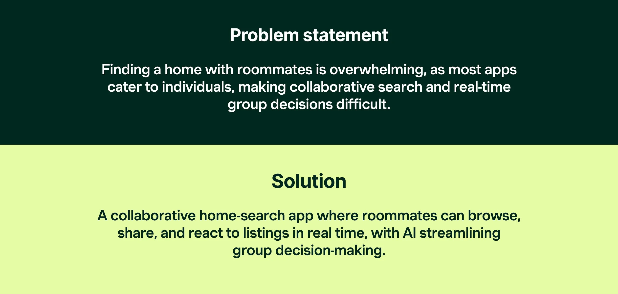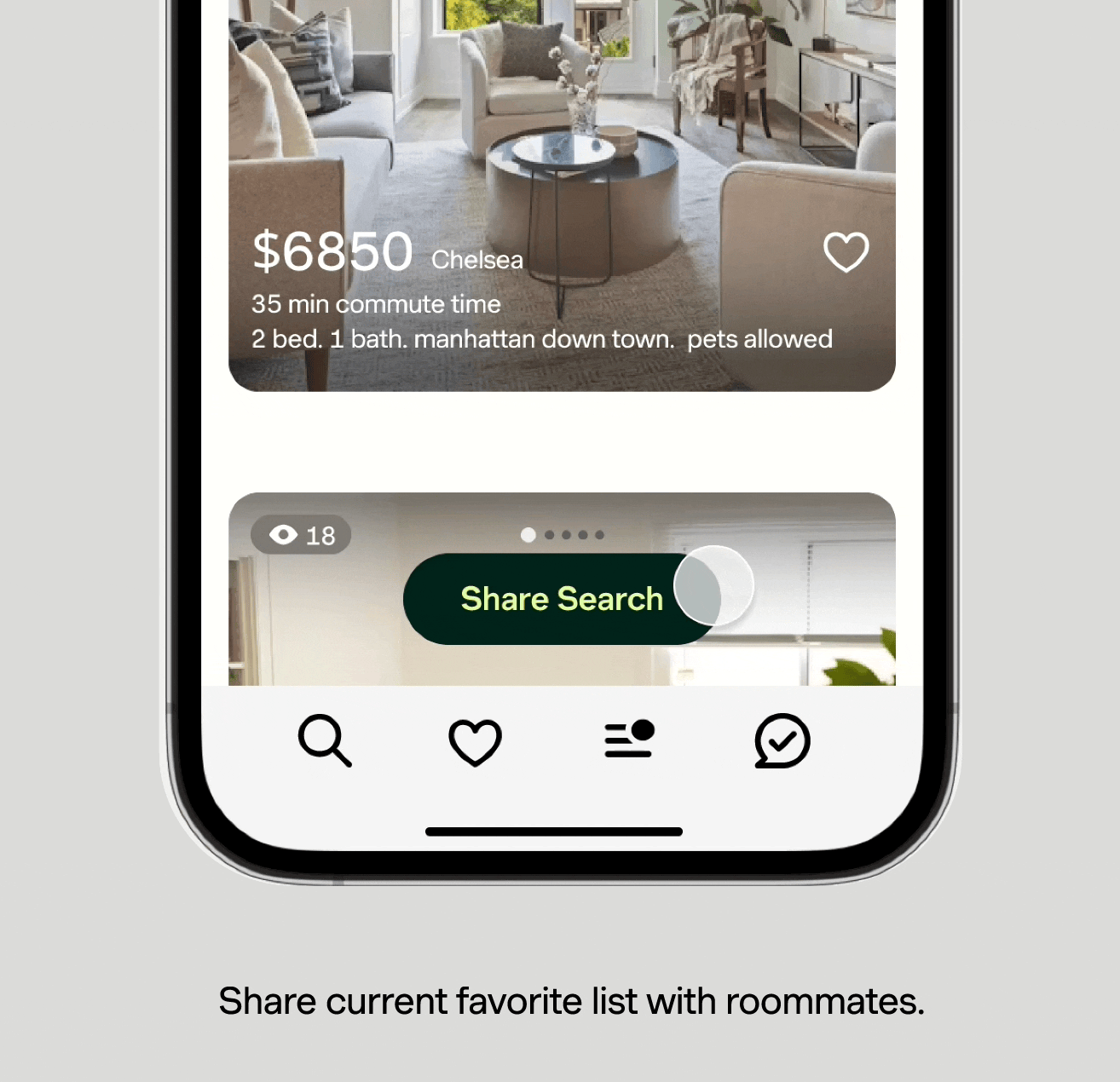 A Collaborative Home Search app designed for roommates, to explore, react, and decide together in real time. Provide a smart listing organization powered by AI-assisted filters.