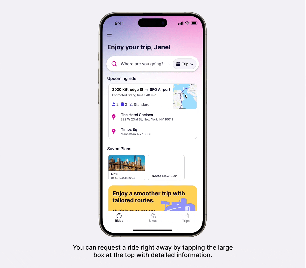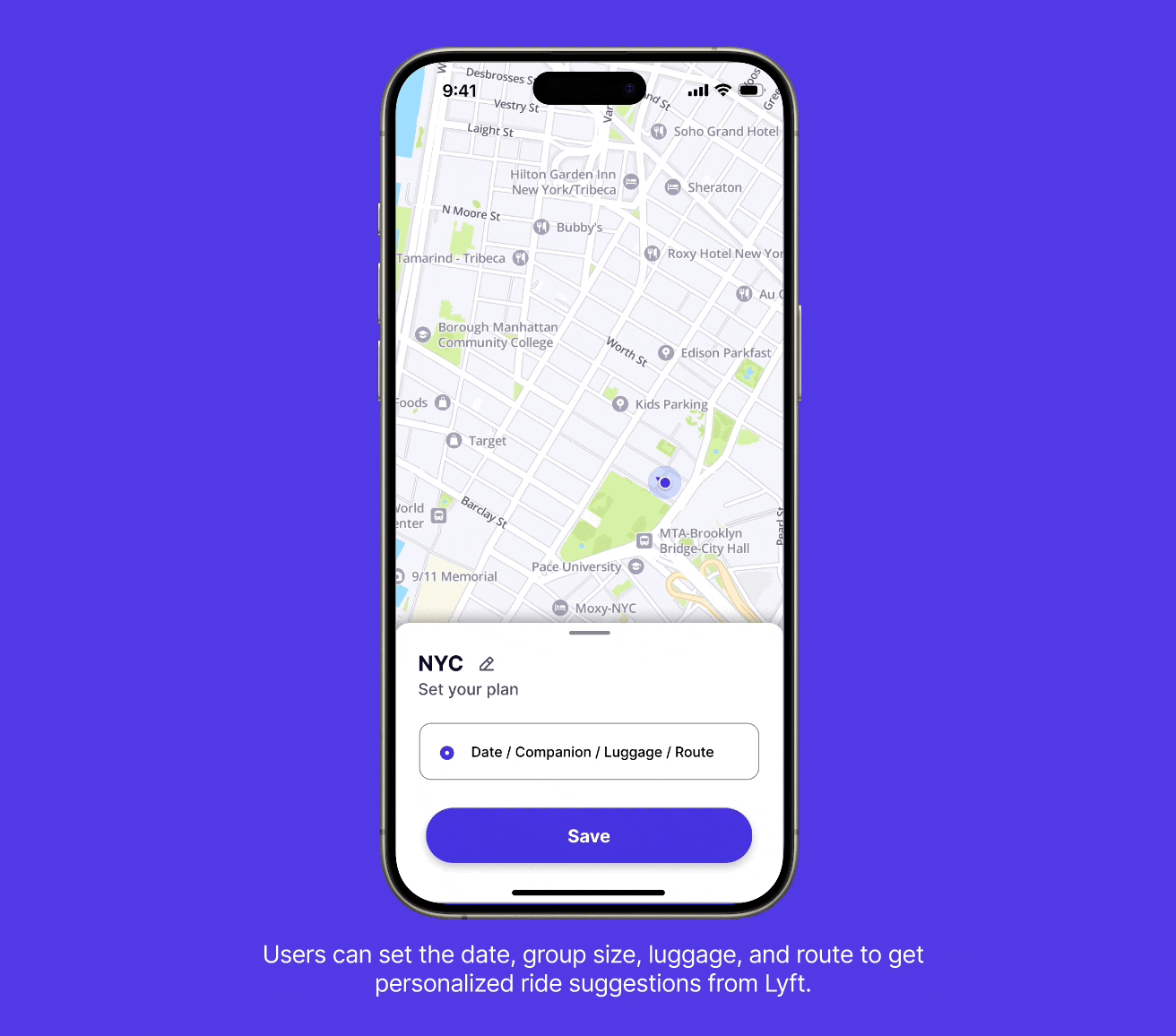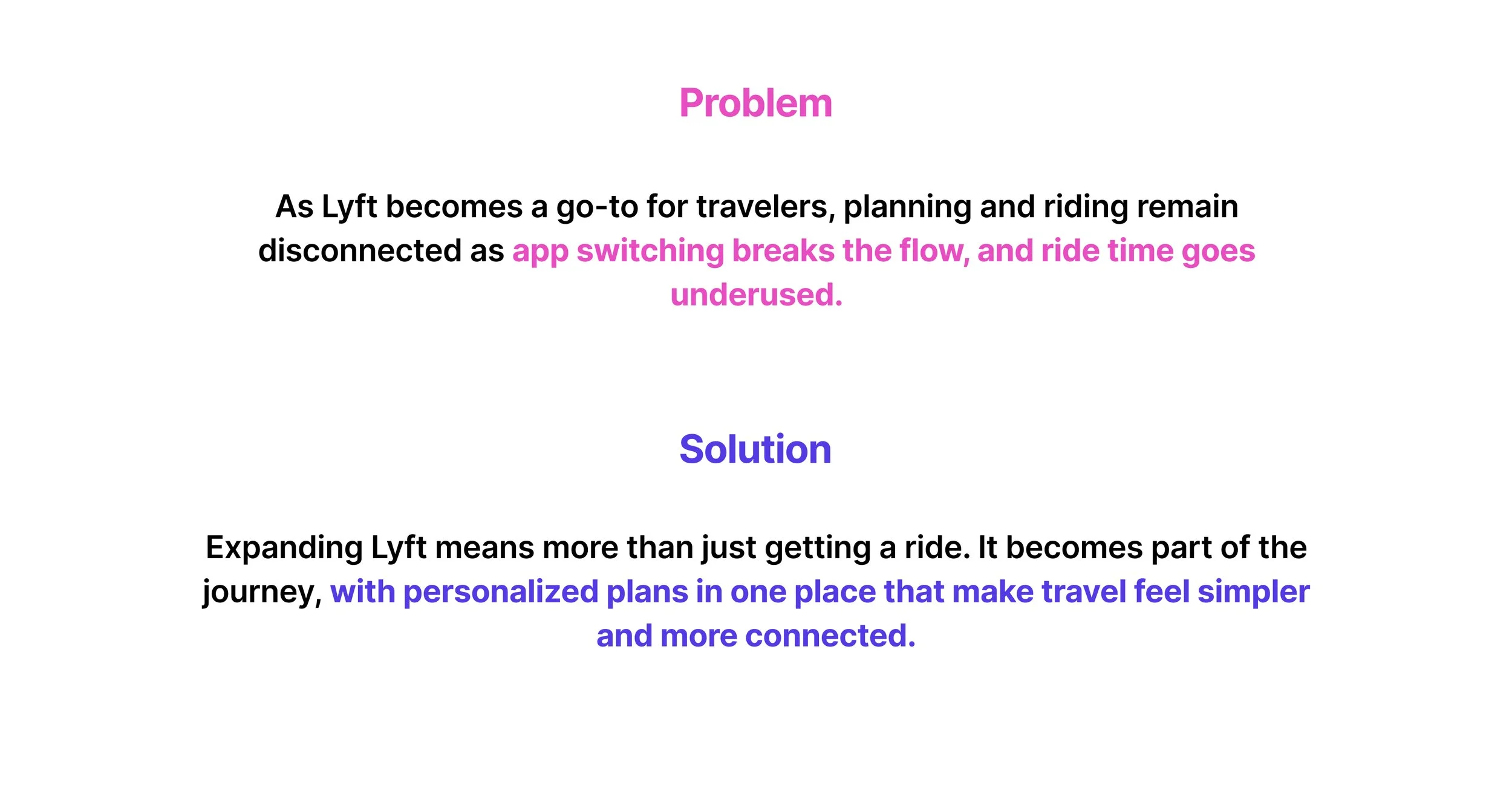 Feature extension project to streamline travel planning by offering a personalized, all-in-one solution within the Lyft app, reducing the need for multiple apps.
